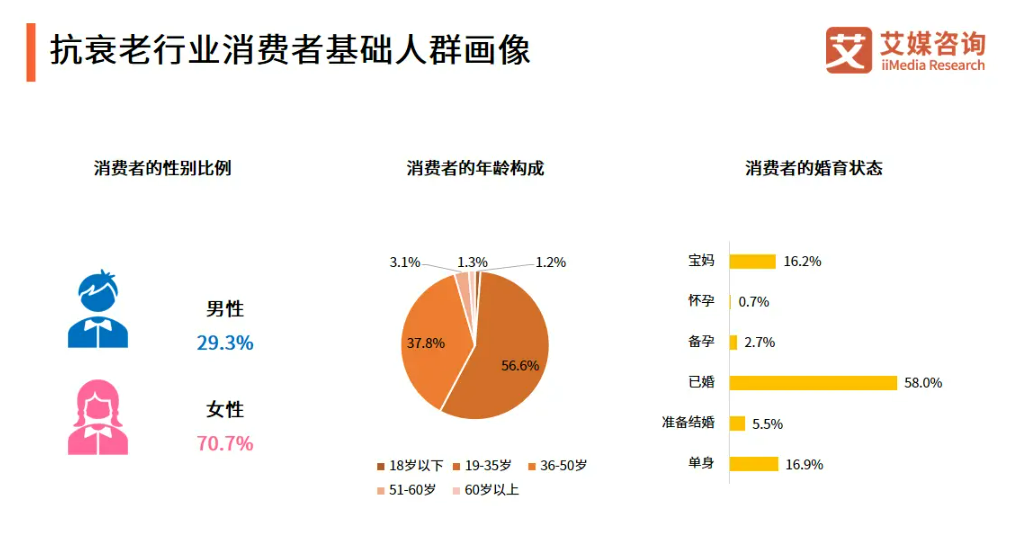 随着“健康中国2030”战略深入推进,抗衰产业正迎来黄金发展期。据行业数据显示,2026年中国抗衰市场规模预计突破1500亿元,口服抗衰成为首要增长赛道。与此同时,消费者认知也在迭代升级:抗衰老口服产品购买者中36-45岁年龄段占比近35%,26-35岁约占30%,年轻化趋势明显。更值得关注的是,女性消费者正逐步转变为研究型消费者,她们关注分子量、原料来源、临床数据和专利认证,追求真正有效的抗衰解决方案。