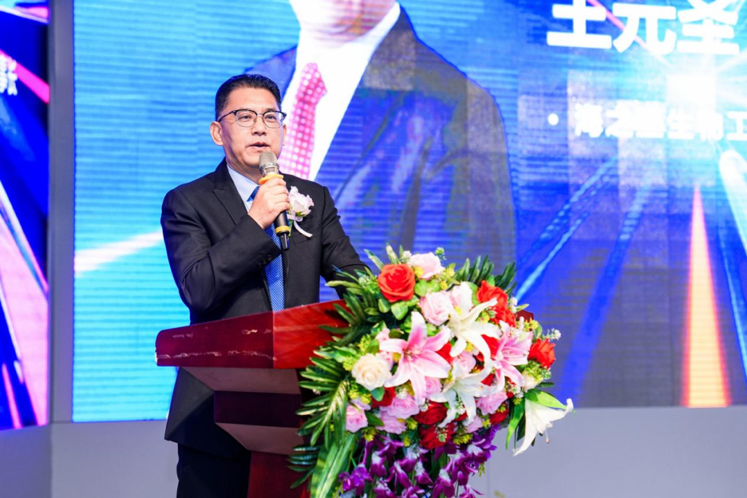 青岛海之圣生物工程有限公司董事长王元圣先生发表致辞。他对会议的成功举办表示热烈的祝贺,并期许大家提高认知,抓住大健康产业发展机遇,坚守长期主义、投身到海之圣新产业事业中,在海之圣获得物质上收获和心灵上成长。