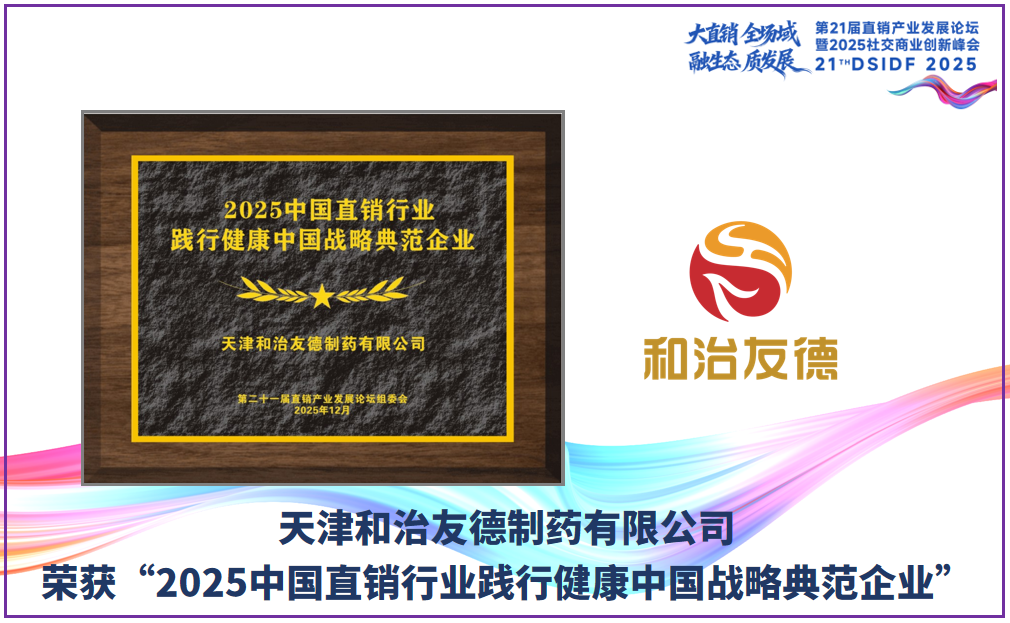 2025年12月4日-6日,第二十一届直销产业发展论坛暨2024社交商业创新峰会在北京中德国际会议会展中心隆重举行。和治友德副总裁池鲲先生受邀出席本次活动,并作为演讲嘉宾做主题分享。本次会上,天津和治友德制药有限公司荣获“2025中国直销行业践行健康中国战略典范企业”;和济饮植物饮料荣获“2025中国直销行业明星产品”;池鲲副总裁荣获“2025中国直销行业践行社会责任榜样人物”奖项。