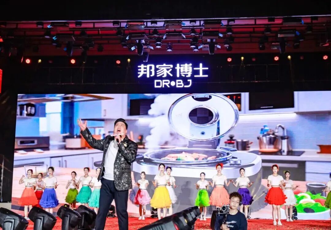随后,李广洲先生现场演唱其为邦家博士烹饪机创作的最新主题曲《邦邦大厨》,朗朗上口的歌词与动感欢乐的旋律,和众多年轻的舞者一起为现场注入无限活力!