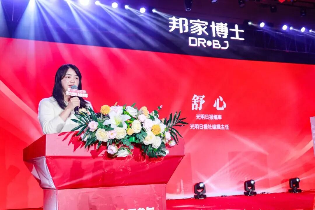 值得一提的是,戴嵘总裁所著2025版《公益营销》新书在大会首发,邦家博士品牌创始人戴嵘女士,光明日报出版社副编审舒心与《公益营销》推荐题词胡远江教授共同参与新书揭幕仪式,将气氛推向高潮。