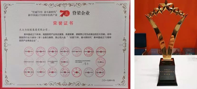 新中国成立70周年优秀企业评选活动由中国20家医药协会共同发起,对推荐的近500家医药企业,在贡献度、创新度和影响度三方面综合评价,最终推选出35家“新中国成立70年医药产业脊梁企业”,天士力荣耀入选。