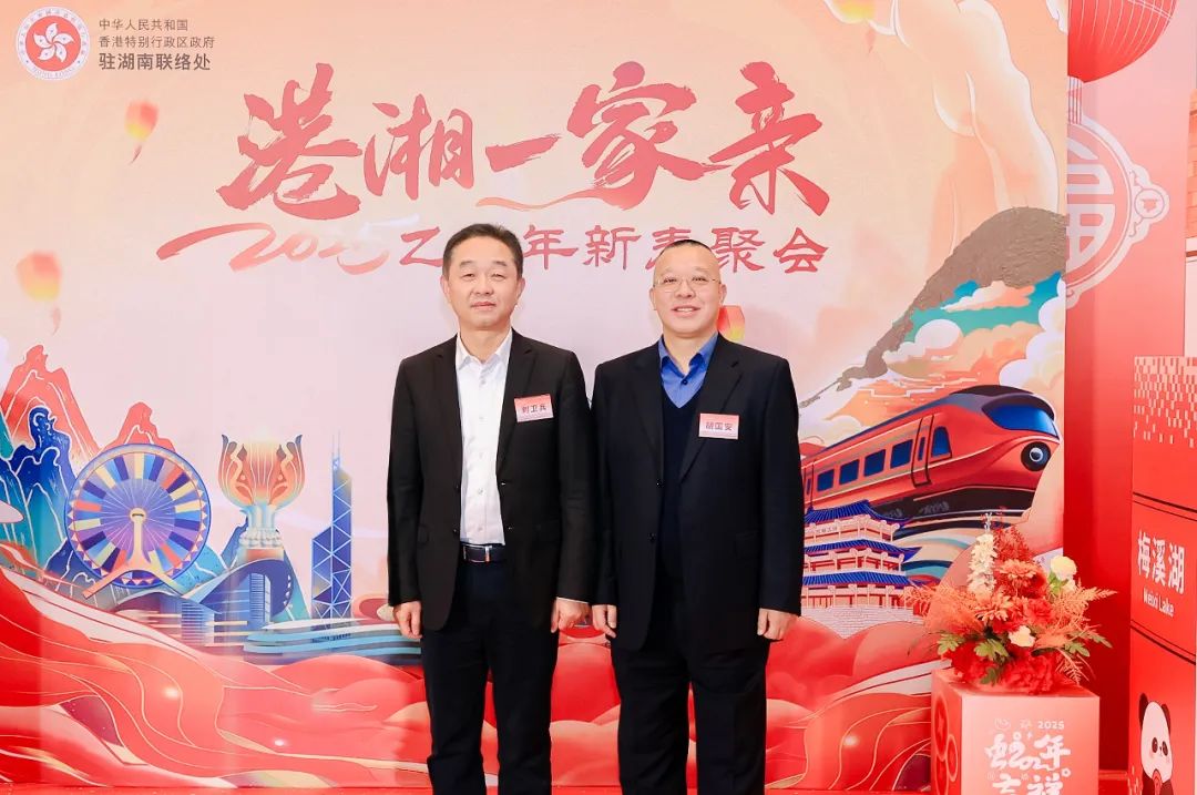 2025年2月25日,由香港特别行政区政府驻武汉经济贸易办事处驻湖南联络处与湖南省人民政府港澳事务办公室举办的“港湘一家亲2025新春聚会”在湖南长沙市成功举办。香港特别行政区政府驻武汉经济贸易办事处主任蔡敏君;中共湖南省委统战部副部长、省政府侨办主任刘卫兵,湖南省人民政府港澳事务办公室副主任郭向丽,中共湖南省委教育工委委员、省教育厅党组成员余伟良,湖南省科技厅党组成员、副厅长佟来,湖南省公安厅党委委员、副厅长余良勇,湖南省出入境边防检查总站副总站长丁莉,湖南省商务厅党组成员、副厅长刘素月,湖南省文旅厅党组成员、副厅长龚铁军,中共湖南省委统战部港澳台处处长梁良,湖南省人民政府港澳事务办公室港澳处处长黎冲;香港特别行政区政府驻湖南联络处主任李锦雄;长沙市政协副主席刘金文,中共长沙市委统战部副部长、市侨办主任杨光华,中共长沙市委统战部港澳处处长赵敏等领导出席。香港湖南联谊总会常务副会长、香港长沙联谊会会长、绿之韵集团董事长胡国安与在湘港人和港资企业代表等近200名来宾共聚一堂同贺新春。